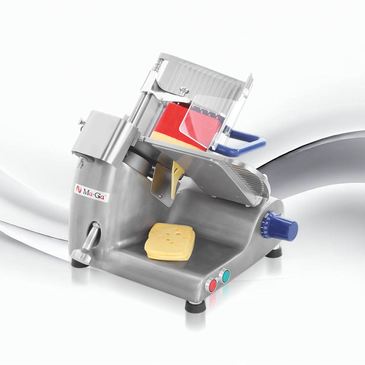 - System stabilizacji produktu – zaawansowany mechanizm dociskacza zapewniający stabilne położenie krojonego produktu