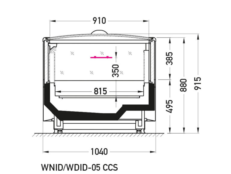 Idea WNIE zaprojektowano do efektywnej ekspozycji mrożonek — lodów, mrożonego mięsa, gotowych dań i produktów rybnych. Konstrukcja REMOTE współpracuje z agregatem zewnętrznym (czynnik R744). Standard obejmuje przesuwne pokrywy gięte (CCS) lub góra‑dół/przód‑tył (CCP), elektryczne odmrażanie, 2× sondy NTC, spływy skroplin syfonowane, szyby zespolone oraz pow. ekspozycyjną z blachy ocynkowanej malowanej proszkowo (RAL 9003). Wykończenie: cokoły czarne (RAL 9005); opcje: odbojnik, boki, oświetlenie LEDit.