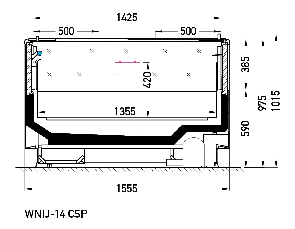 Imja WNIJ zaprojektowano do efektywnej ekspozycji mrożonek — lody, mrożone mięso, ryby i gotowe dania. Jako jednostki PLUG‑IN mają zintegrowany agregat (R290) i funkcję odmrażania gorącym gazem z automatycznym odparowaniem skroplin. Standard obejmuje szyby zespolone (3– lub 4‑stronne zależnie od modelu), powierzchnię ekspozycyjną z blachy ocynkowanej malowanej proszkowo (RAL 9003), sterownik elektroniczny, cokoły czarne (RAL 9005) oraz opcjonalne boki, odbojnik i oświetlenie LEDit. Niektóre warianty (TG / G) mają zintegrowane boki i dodatkowe wykończenia (odbojnik na froncie/bokach, oświetlenie w poręczy).