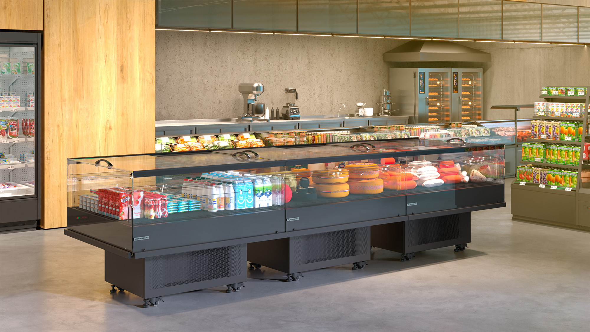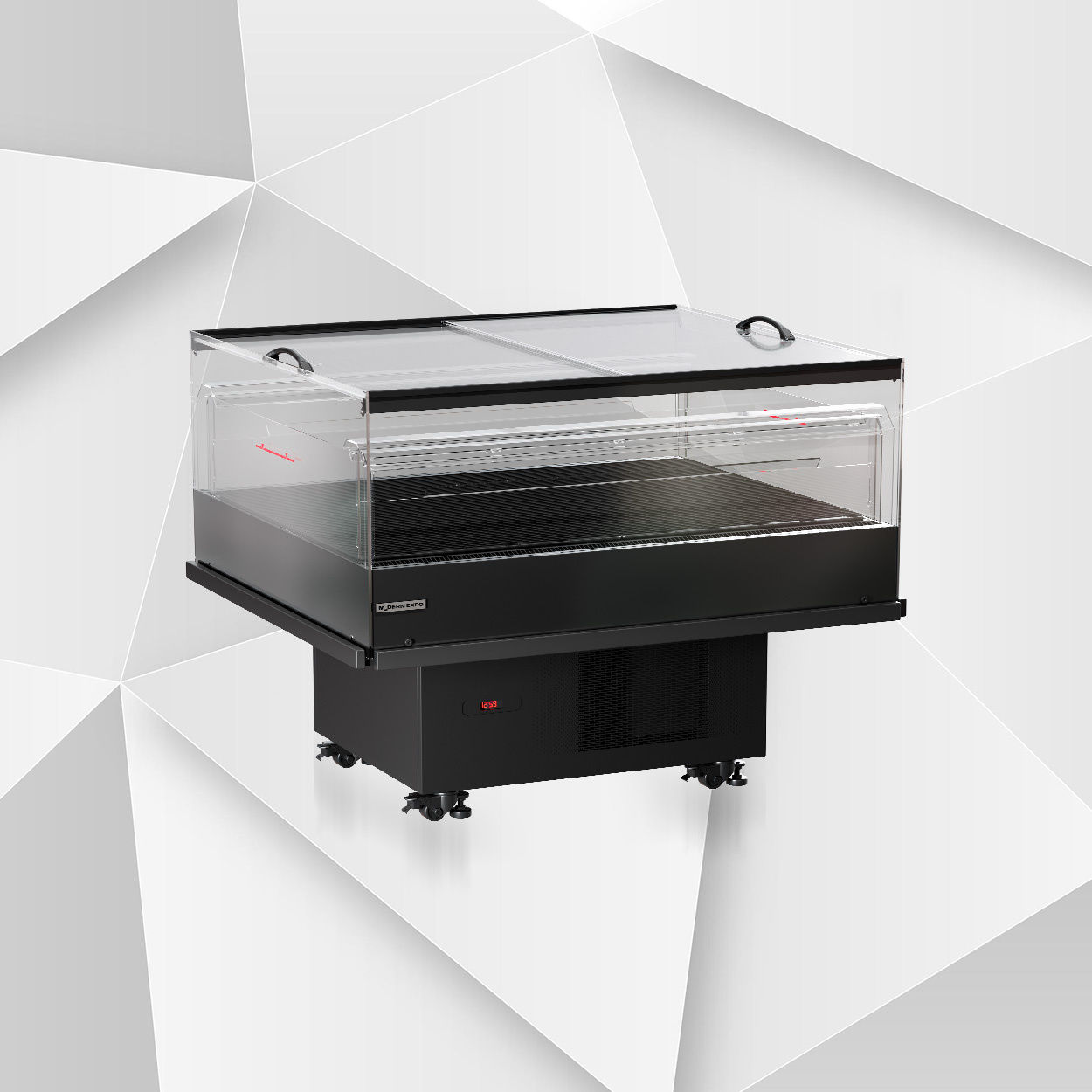 Model o wymiarach 1250 × 1155 × 950 mm oferuje samoobsługowy dostęp do produktów z opcją szczelnych szklanych pokryw, szklanymi panelami bocznymi, półkami ocynkowanymi z powłoką proszkową i kółkami. Pracuje w klasach temperaturowych 3M1, 3M2 i 3N1, ma wewnętrzny agregat na czynnik R290 i uzyskuje klasę efektywności B dzięki zmniejszonym stratom chłodu.