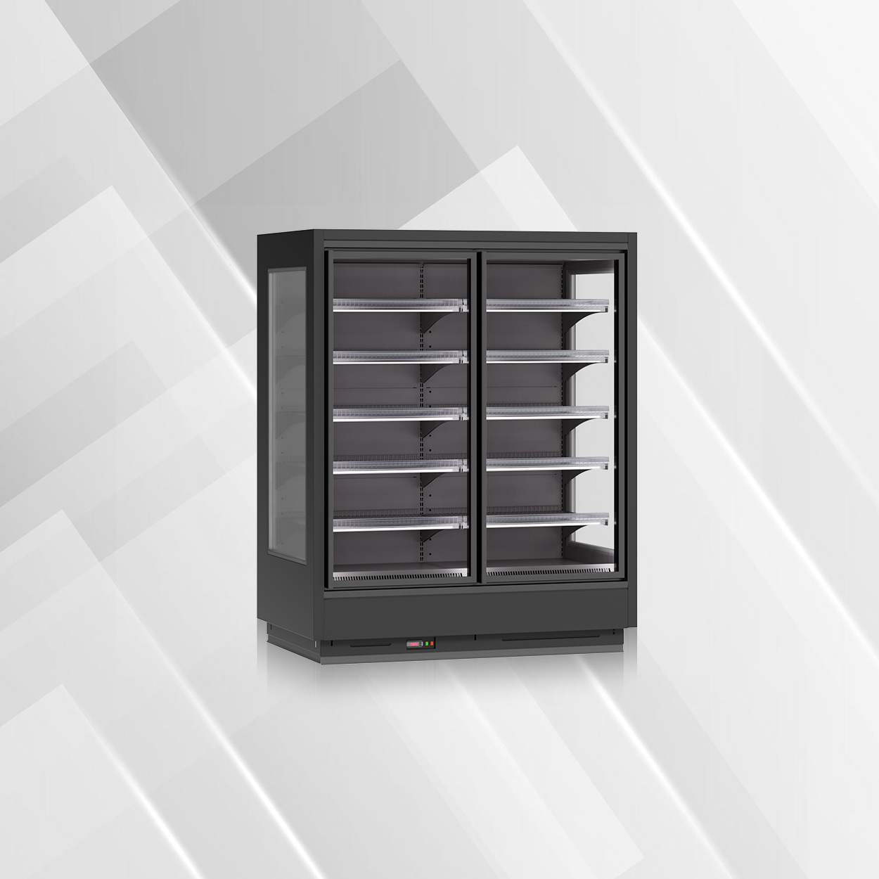 • Opcje oświetlenia: górne LED, oświetlenie półek, pionowe LED — lepsza ekspozycja produktów.